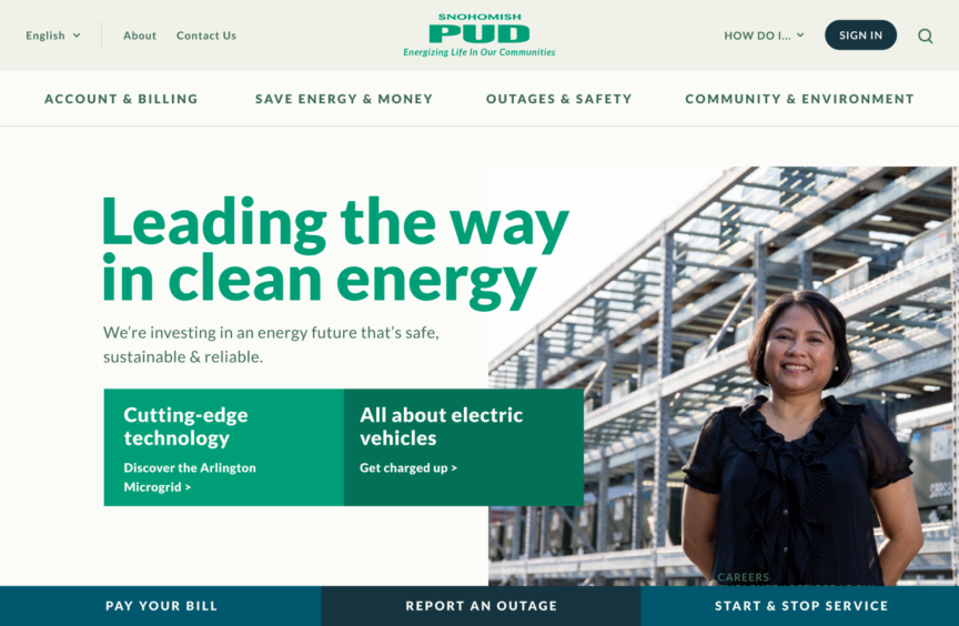 Plus, after our initial discovery, SnoPUD had a fairly concise list of objectives that the majority of visitors come to the site to fulfill: paying their bill, tracking and reporting power outages, researching rebates. There were equally straightforward business objectives the SnoPUD team wanted to accomplish, including promoting their commitment to clean energy and energizing life in their communities.