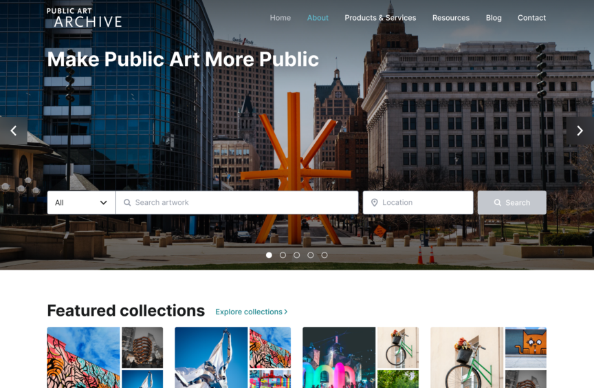 The platform enables users to search and browse a global catalog of public artworks through powerful filtering and search capabilities.
