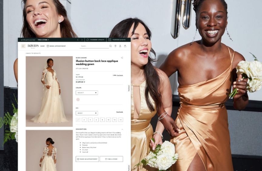 David’s Bridal is one of the largest wedding dress retailers in the world, with more than 300 stores in 45 states, Canada, and the UK. In early 2019, David’s Bridal asked for our help on their ecommerce replatform. Another agency had been moving them off their old, on-premise Microsoft IBM system, but the project was stalled. David’s asked us to get it back on track — which we did, tackling a headless Magento2 implementation to support David’s Bridal’s entire operational infrastructure. Two years later, beta.davidsbridal.com went live.