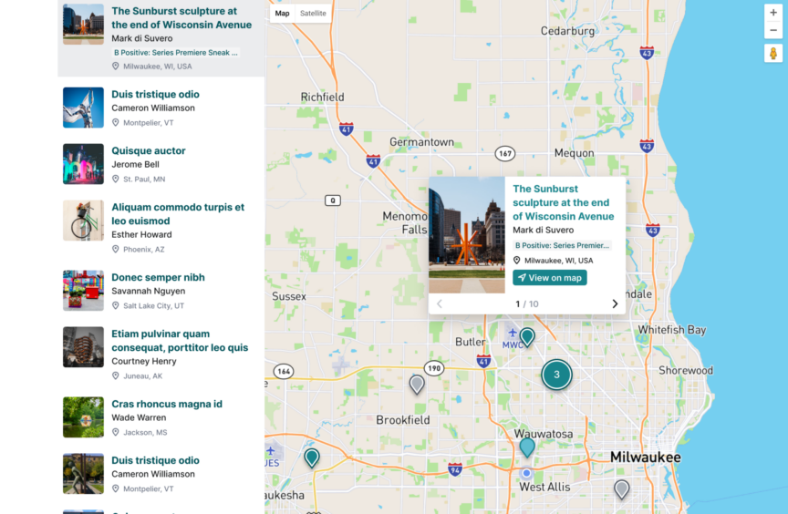 Public art is inherently tied to place. The platform integrates interactive mapping tools that allow users to discover artworks geographically.