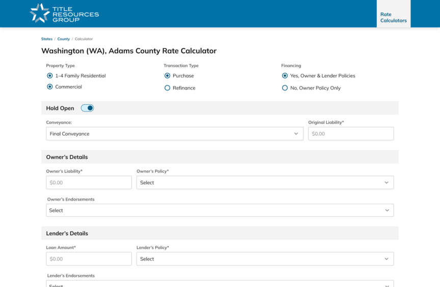Bilberrry developed a custom Rate Calculator Builder, a web application that enables TRG to create and manage calculators for each jurisdiction.